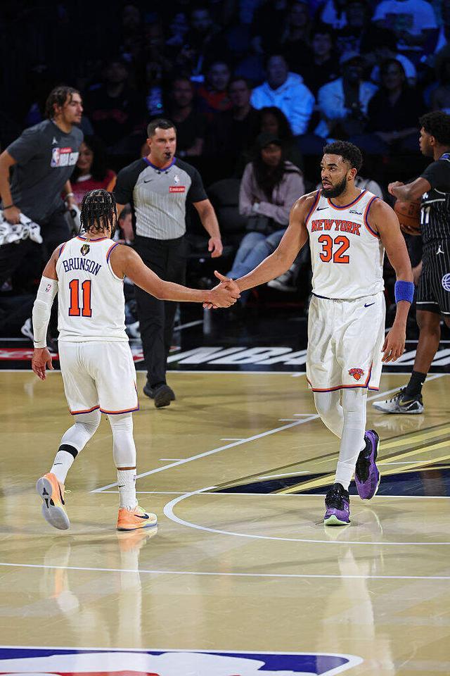 在一場(chǎng)定勝負(fù)的NBA杯半決賽的賽場(chǎng),布倫森又一次化身“大場(chǎng)面先生”,全場(chǎng)27投16中,三分球5投2中,轟下40分的同時(shí)送出8次助攻,成了尼克斯“拆穿”魔術(shù)的急先鋒。